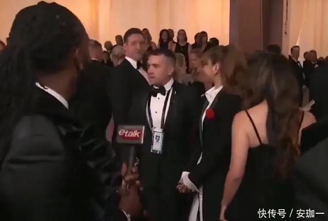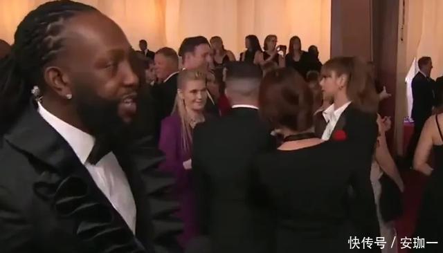 被拒绝后黑人记者有一瞬间愣住了,表情尴尬。然后又让其他同事前去沟通,之后Lisa的工作人员做了一个“示意”动作向她转述。